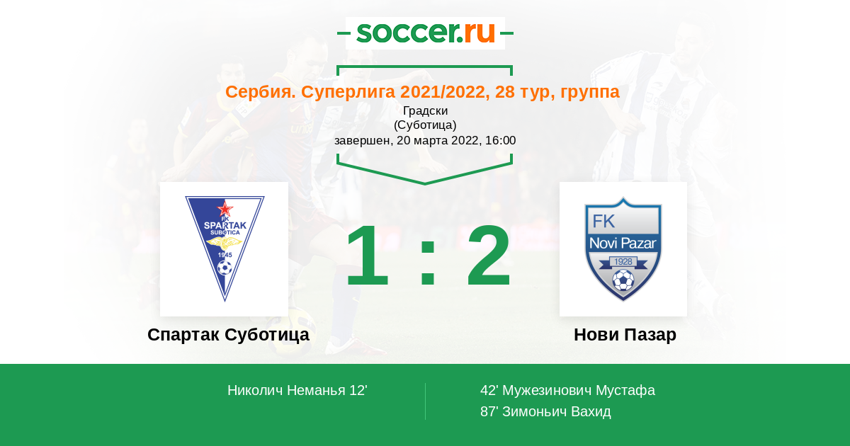 | Спартак Суботица | 38:34 | 20:18 | 18:16 |
