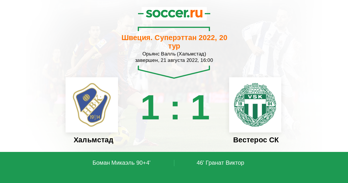 | Хальмстад | Вестерос СК | |