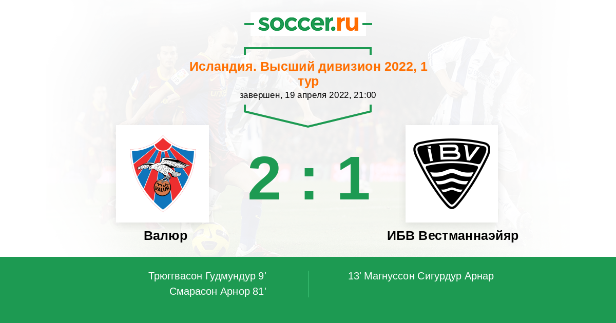 Валюр 1:1 ИБВ Вестманнаэйяр