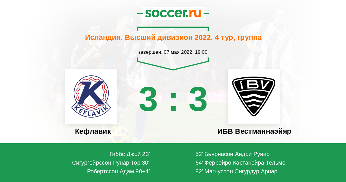 | Кефлавик | ИБВ Вестманнаэйяр | |