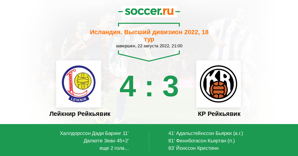 | Лейкнир Рейкьявик | КР Рейкьявик | |