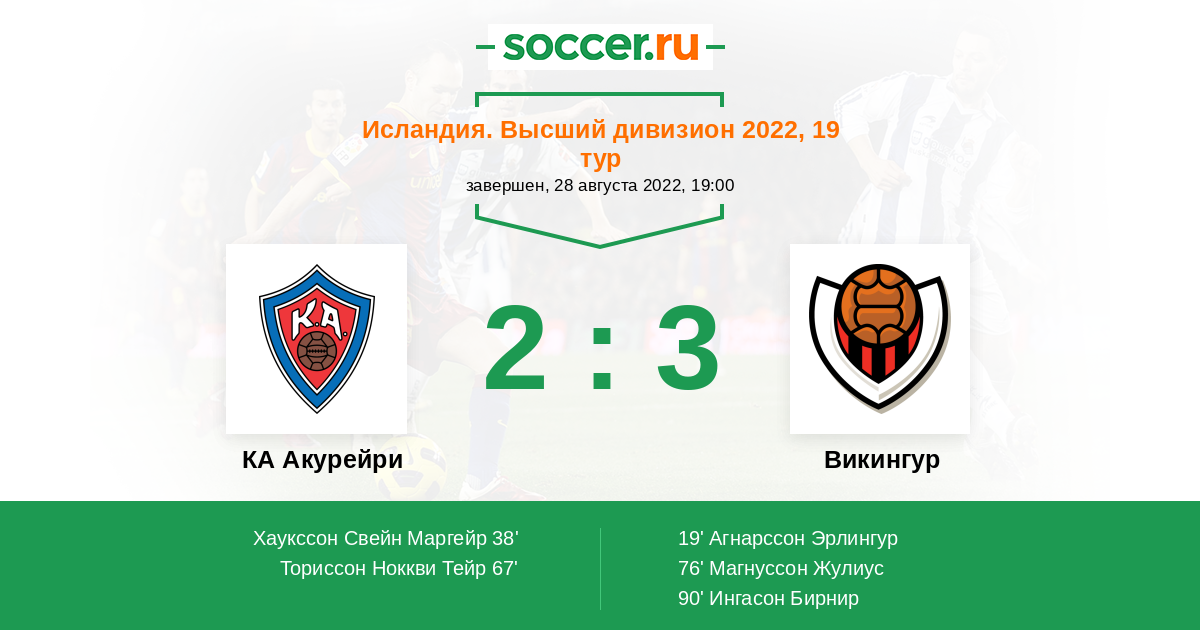 | КА Акурейри | 45:53 | 19:25 | 26:28 |