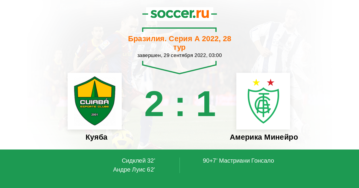 | Америка Минейро | 13:11 | 6:6 | 7:5 |