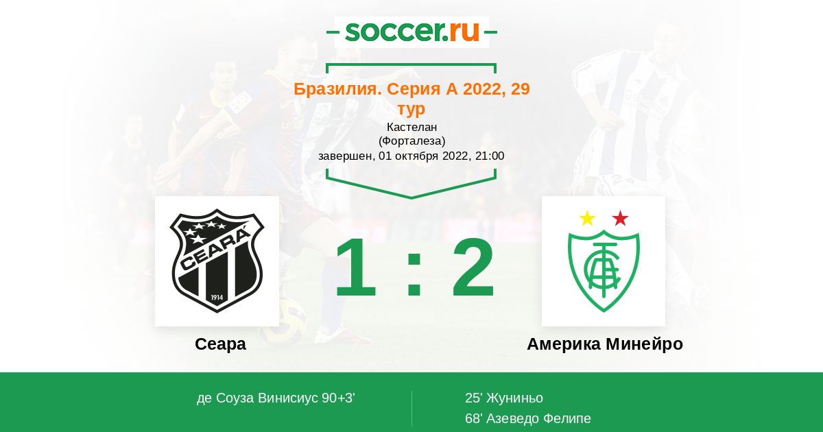 | Америка Минейро | 35:34 | 25:16 | 10:18 |
