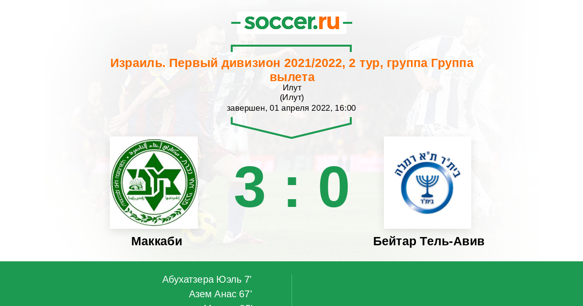 Хапоэль Кфар-Саба 0:2 Маккаби