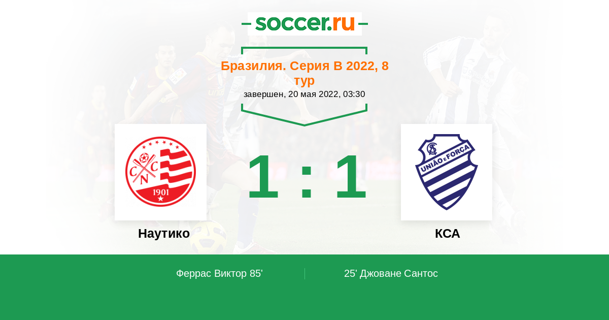 | Бразилия. Серия В | 5 | 2 | 2 | 1 |
