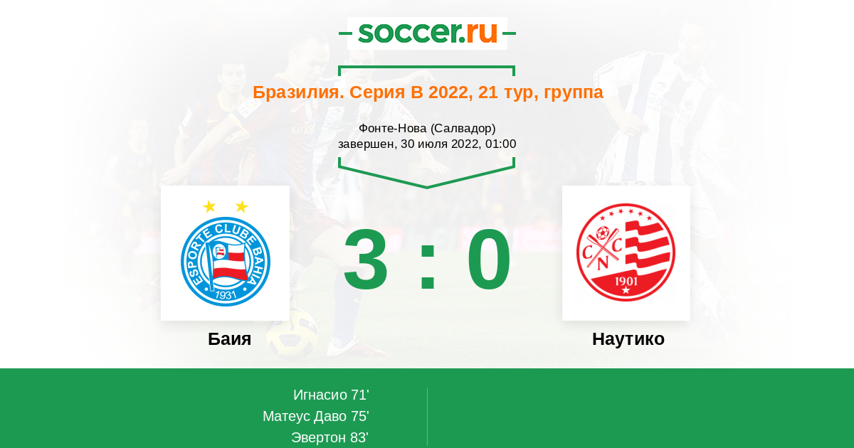 | Баия | 16:19 | 11:3 | 5:16 |