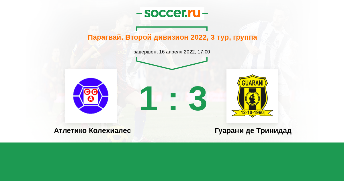 | Атлетико Колехиалес | Гуарани де Тринидад | |