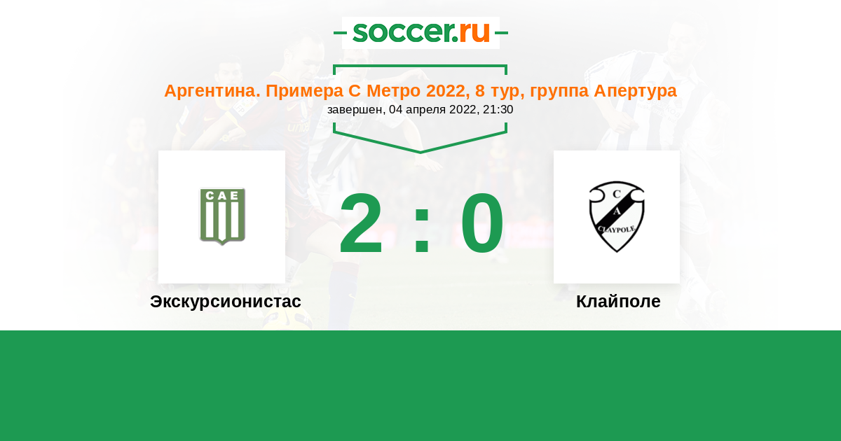 | Аргентина. Примера С Метро | 5 | 4 | 1 | 0 |