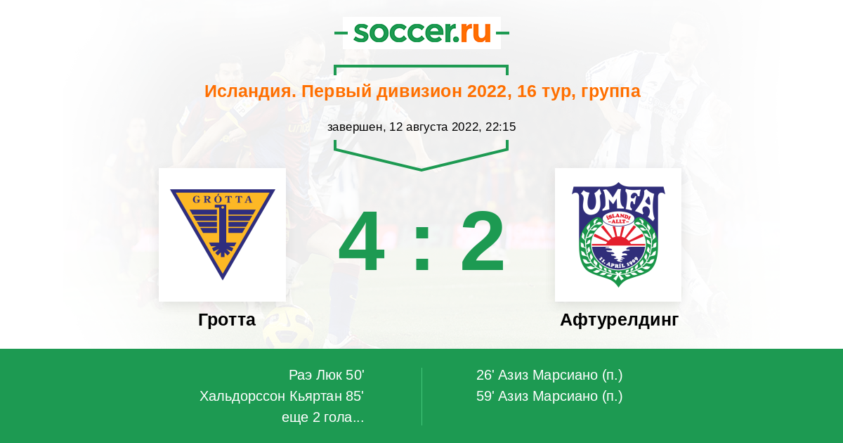| Афтурелдинг | 44:43 | 20:19 | 24:24 |