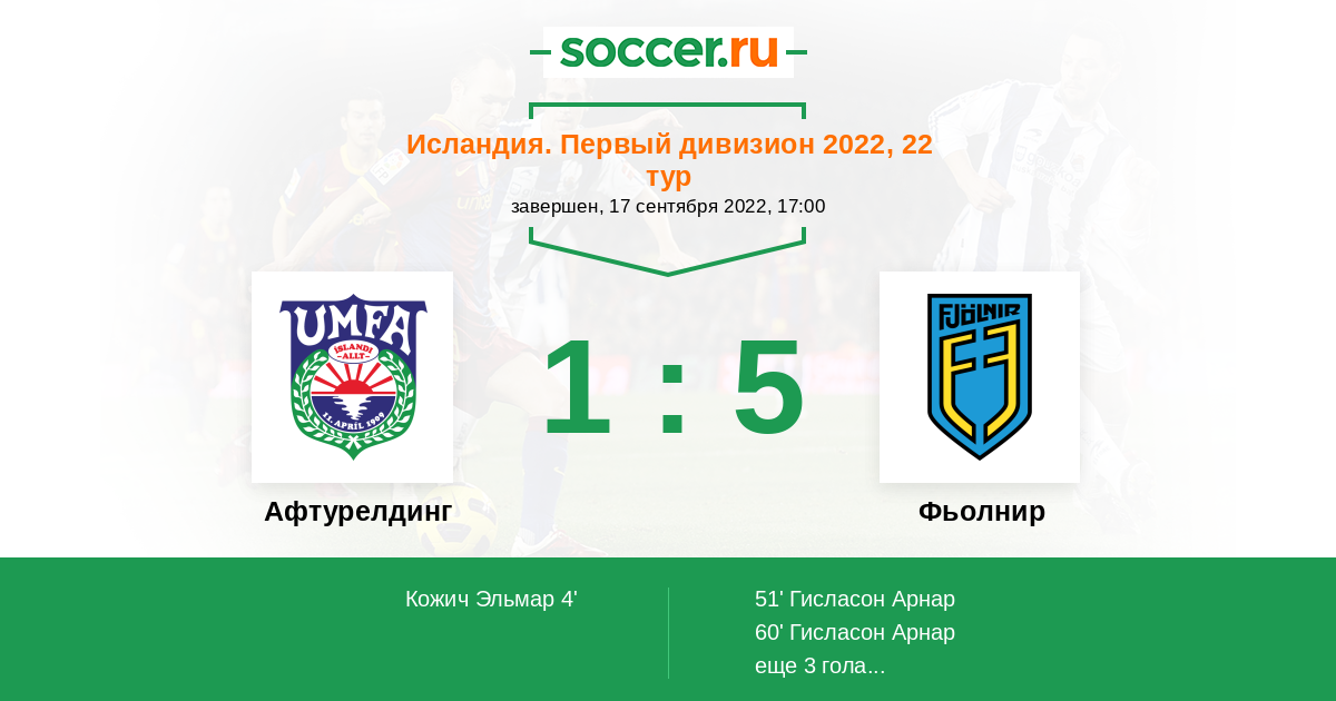 | Афтурелдинг | 14:22 | 10:10 | 4:12 |