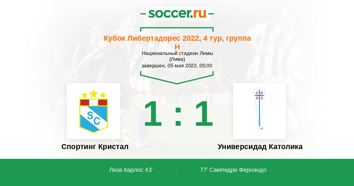 | Спортинг Кристал | 1:2 | 0:0 | 1:2 |