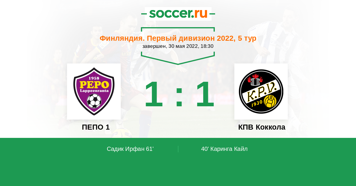 | КПВ Коккола | 2:1 | 2:1 | 0:0 |