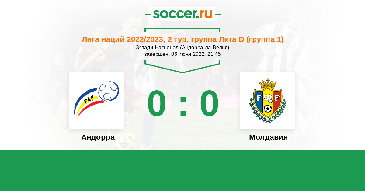 | Андорра | 4:13 | 1:5 | 3:8 |