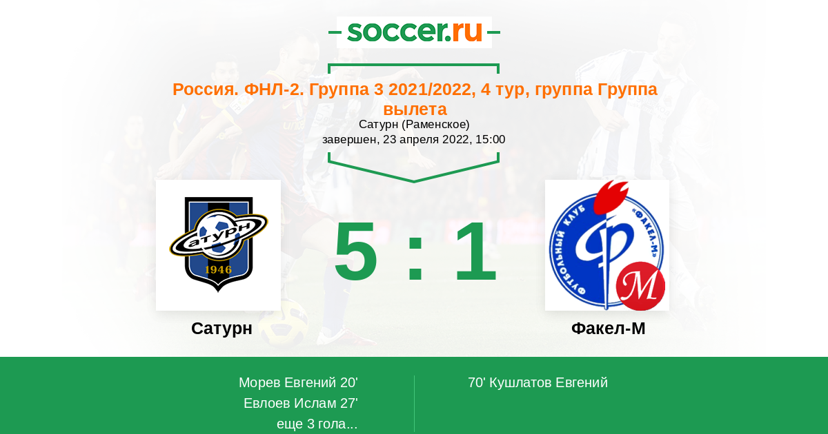 | Сатурн | 4:0 | 2:0 | 2:0 |