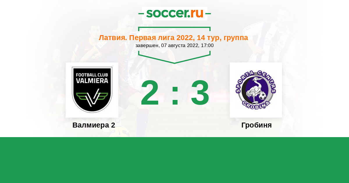 | Валмиера 2 | 3:7 | 0:2 | 3:5 |