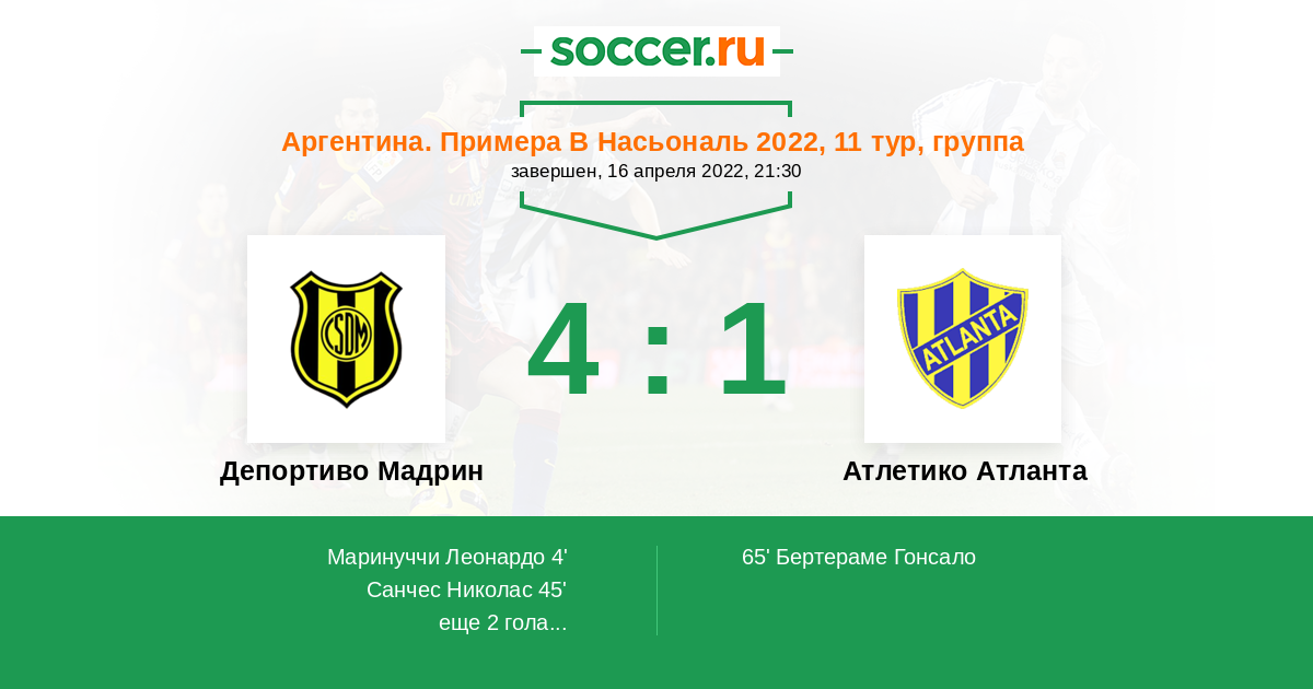 | Депортиво Мадрин | 6:5 | 4:2 | 2:3 |