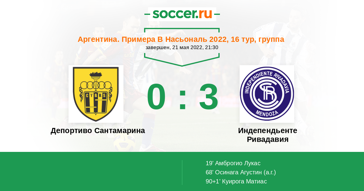 Депортиво Сантамарина - Индепендьенте Ривадавия
