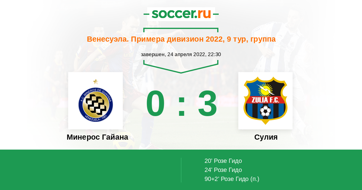 | Минерос Гайана | 28:34 | 18:18 | 10:16 |