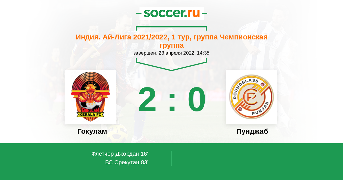 | Гокулам | 14:13 | 7:7 | 7:6 |