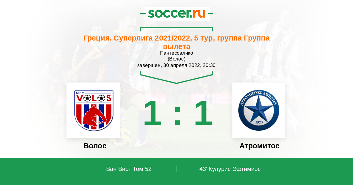 | Атромитос | 23:24 | 5:11 | 18:13 |