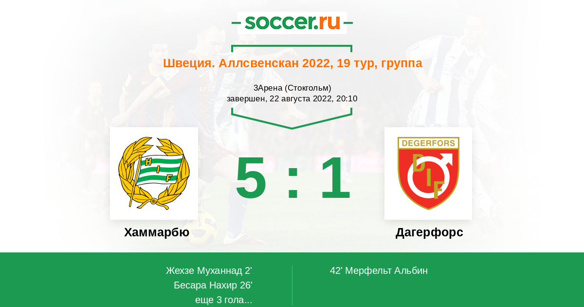| Хаммарбю | 44:25 | 23:10 | 21:15 |