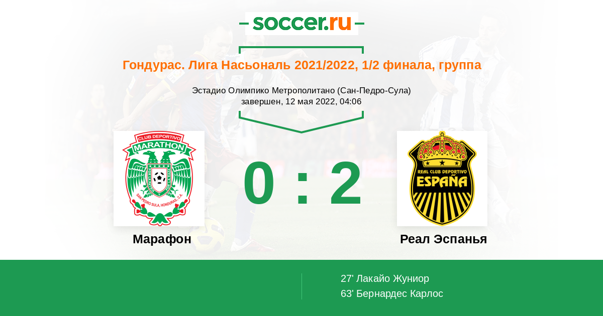 | Марафон | Реал Эспанья | |