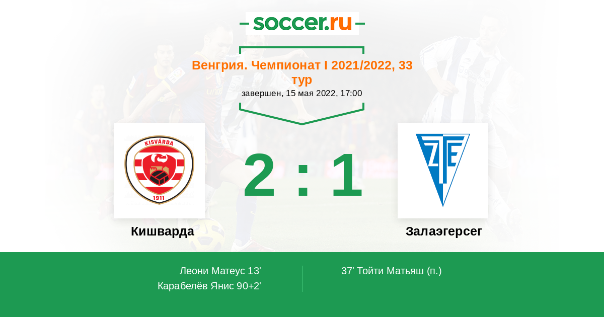 | Залаэгерсег | 25:43 | 9:15 | 16:28 |