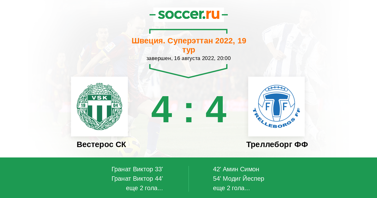 | Треллеборг ФФ | 29:28 | 20:12 | 9:16 |