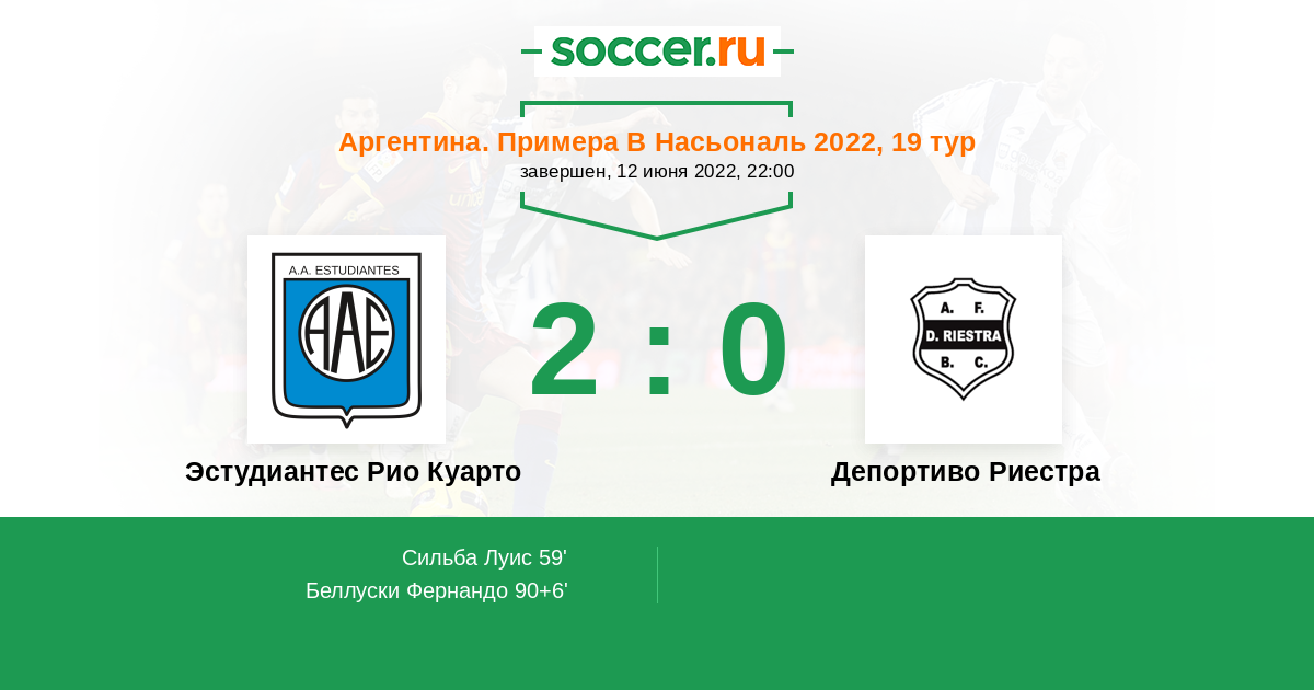 Эстудиантес Рио Куарто 2:0 Депортиво Риестра