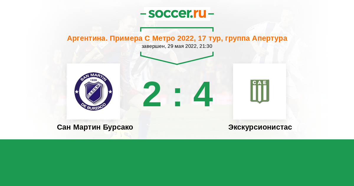 | Аргентина. Примера С Метро | 18 | 6 | 8 | 4 |