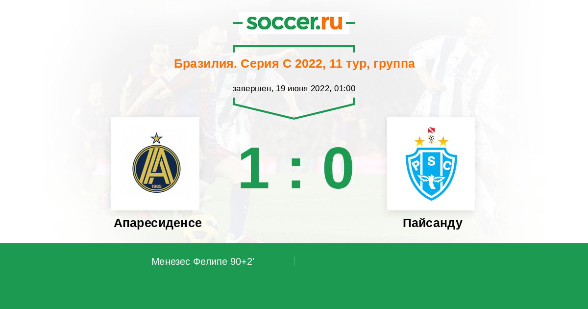 | Апаресиденсе | 1:2 | 0:0 | 1:2 |