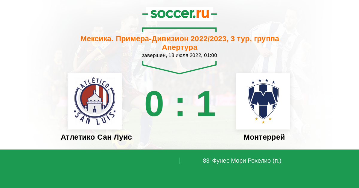 | Атлетико Сан Луис | 19:27 | 8:6 | 11:21 |