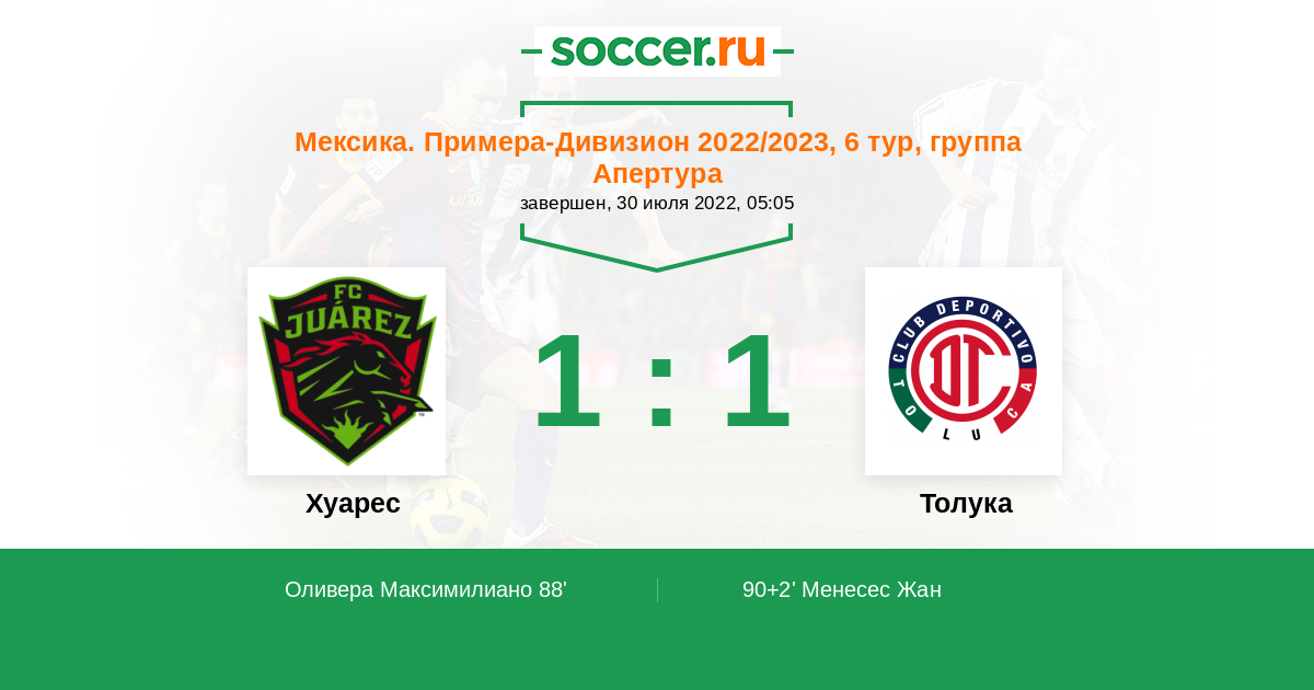 | Хуарес | 15:21 | 6:12 | 9:9 |