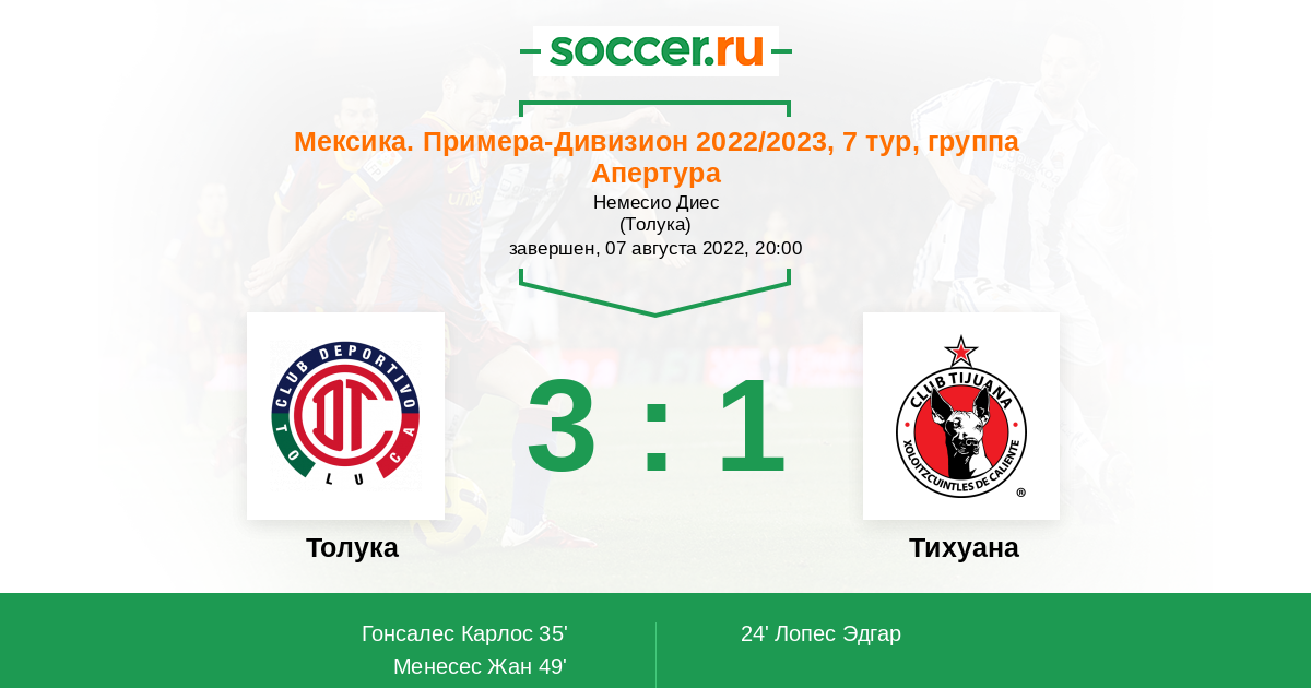 | Тихуана | 35:50 | 25:18 | 10:32 |