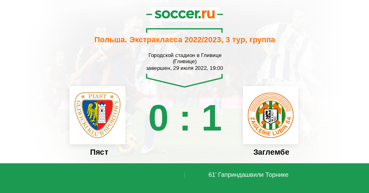 | Заглембе | 31:42 | 22:22 | 9:20 |