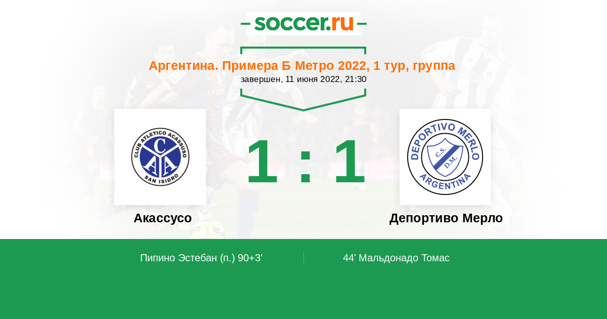 | Депортиво Мерло | 17:11 | 11:6 | 6:5 |