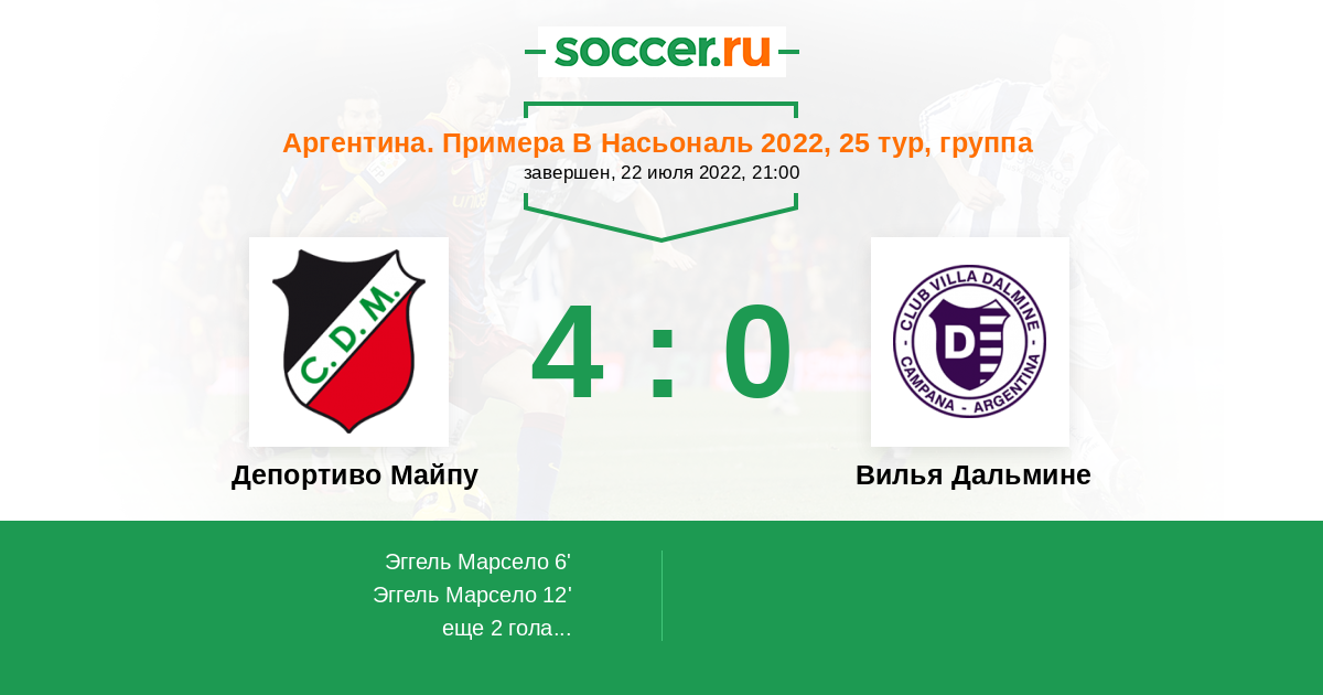 | Депортиво Майпу | 5:3 | 2:1 | 3:2 |