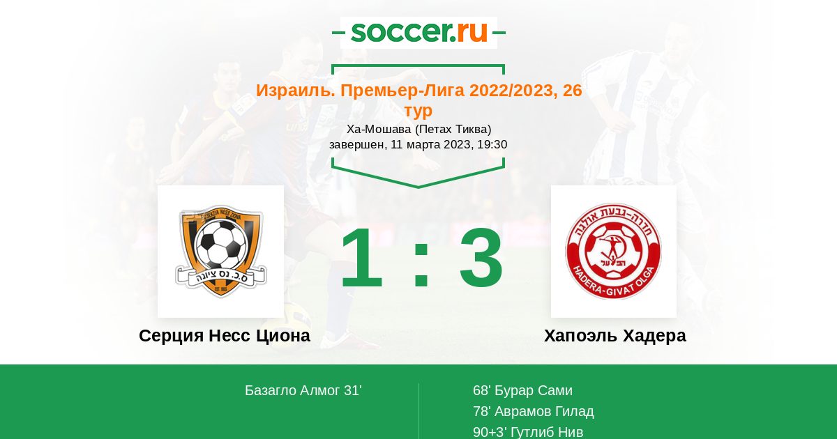 | Хапоэль Хадера | 7:6 | 5:4 | 2:2 |