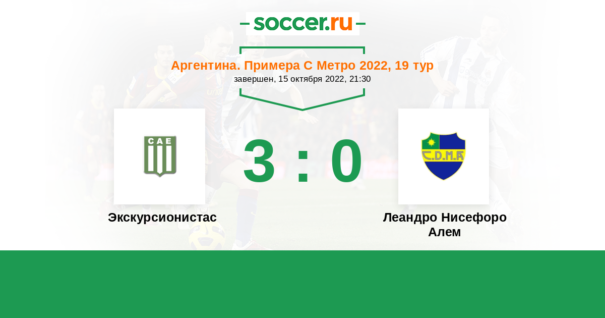 | Аргентина. Примера С Метро | 22 | 8 | 3 | 11 |