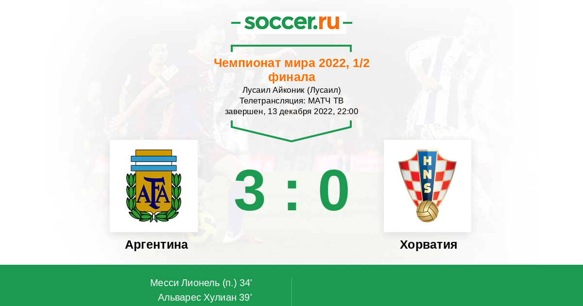 Хорваты на ЧМ 2018 забили Аргентине 3 мяча во втором тайме. У них есть время. Но удачи Аргентине!!!)))))))