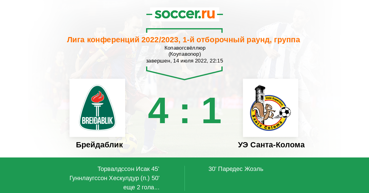| Брейдаблик | УЭ Санта-Колома | |
