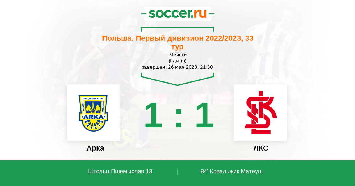 | Польша. Первый дивизион | 18 | 7 | 6 | 5 |