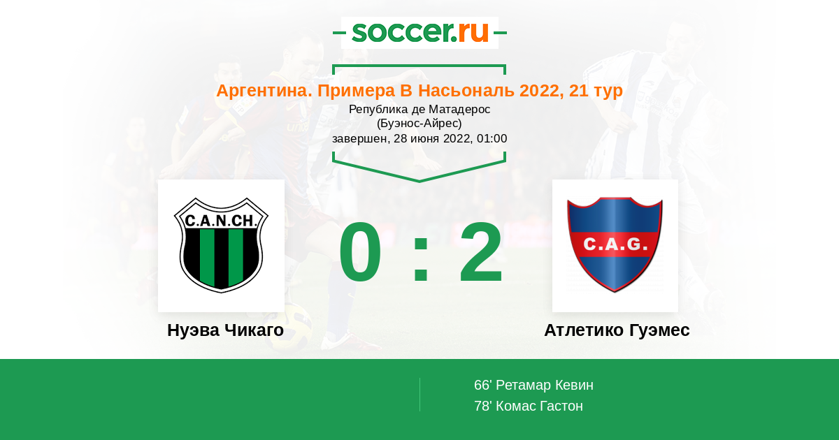 | Нуэва Чикаго | Атлетико Гуэмес | |