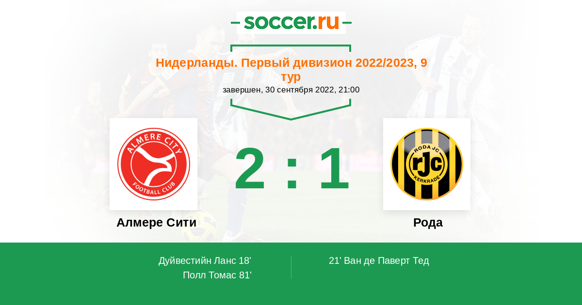 | Алмере Сити | 20:17 | 5:8 | 15:9 |