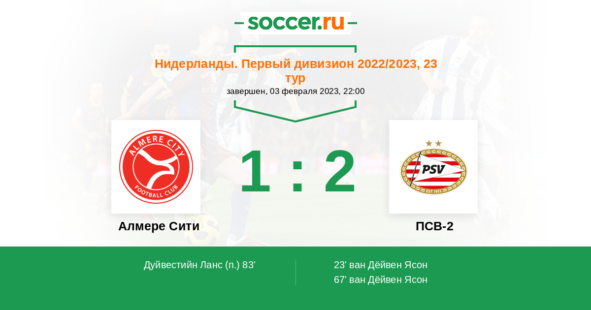 | Алмере Сити | ПСВ-2 | |