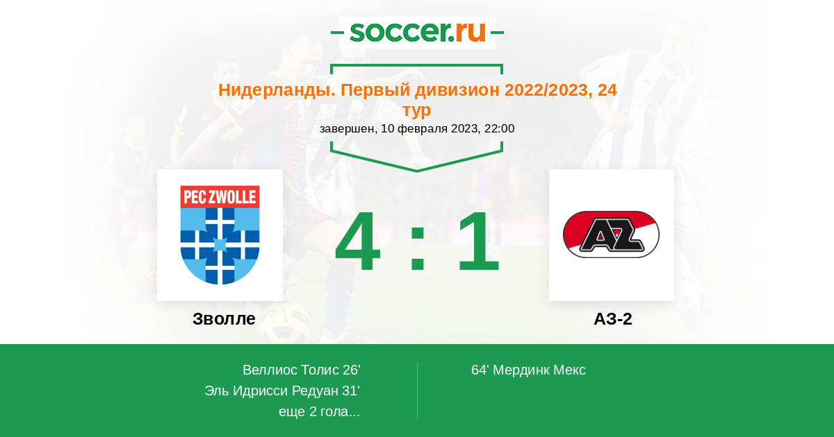 | Зволле | 3:2 | 0:0 | 3:2 |