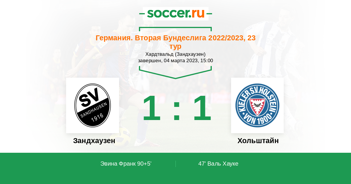 | Зандхаузен | 18:19 | 12:9 | 6:10 |