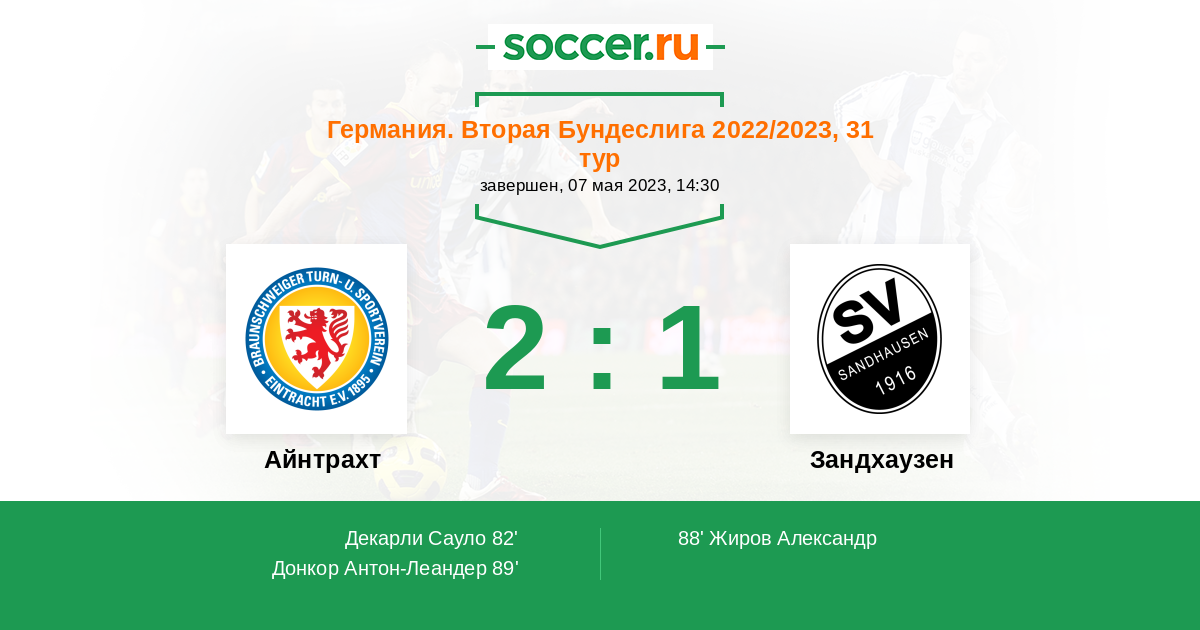 | Айнтрахт | 35:16 | 20:10 | 15:6 |