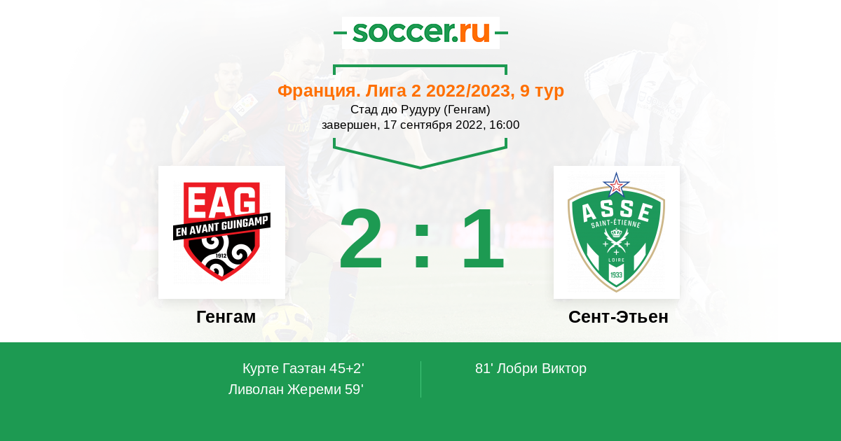 | Генгам | Сент-Этьен | |